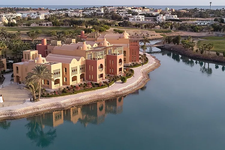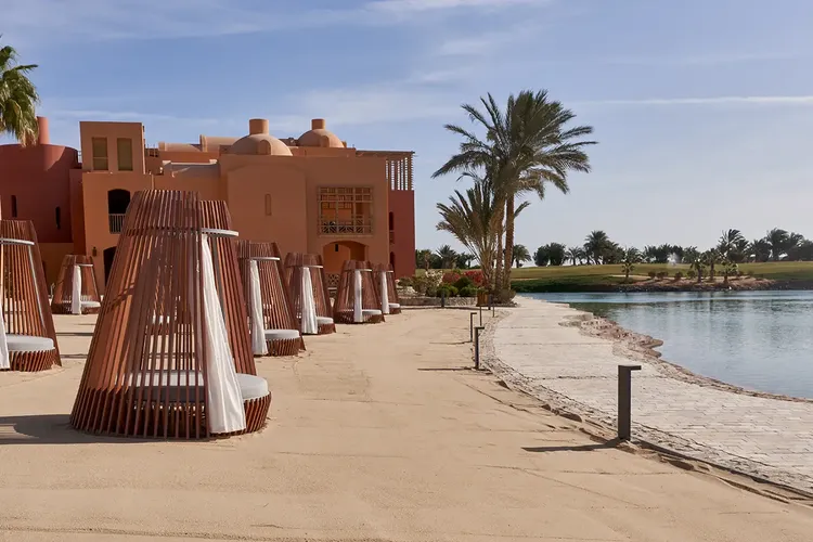 Direct aan de lagune en de golfbaan van El Gouna. Rijtijd naar de luchthaven van Hurgada is ca. 30 minuten.