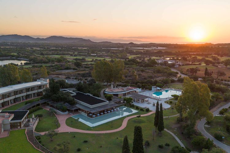 In het zuiden van Sardinië, in de omgeving van het historische Pula. De luchthaven van Cagliari ligt op ca. 45 minuten rijden.